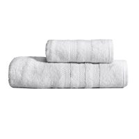 Juego FRANCO VALENTE de toalla y toallón en 100% algodón, en calidad pesada de 500 gramos por metro cuadrado. Toalla de 48cm x 88cm y toallón de 80cm x 150cm, en colores surtidos. Pack por unidad en bolsa individual.