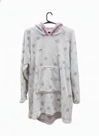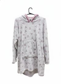 • Maxi buzo NEXO tipo canguro en flanel estampado para mujer, en acrilico, con dos bolsillos en el frente, con capucha, en colores surtidos y talles S/M y L/XL. Pack por unidad.