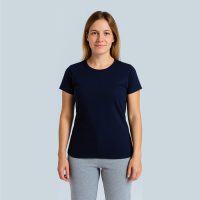 • Remera COTAR para mujer, lisa color azul marino manga corta cuello redondo, en jersey de algodón/polietser, en talles 1, 2, 3 y 4. Pack por 6 prendas x talle. Hechas en algodón peinado 24/1