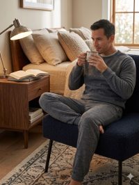 • Pijama NEXO en acrilico pantalon largo y casaca manga larga para hombre, color gris oscuro liso, elástico ancho en la cintura con puños en las mangas y en el pantalon, en talles L y XL. Pack por 6 prendas, 1L y 2XL.