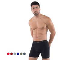 • Boxer DUFOUR liso para hombre en algodón, poliamida y lycra tiro corto elástico de cintura personalizado, en colores surtidos y en talles S, M, L, XL y XXL. Pack por unidad.