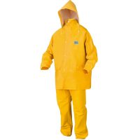 • Traje de agua OMBU en PVC amarillo ó azul 32 micrones. Chaqueta con capucha desmontable, respiración con red, con cierre, puños con elástico. Jardinero con broches en bragueta y botamanga, refuerzo en entrepierna. Pack por unidad. Talle L, XL, 2XL y 3XL.